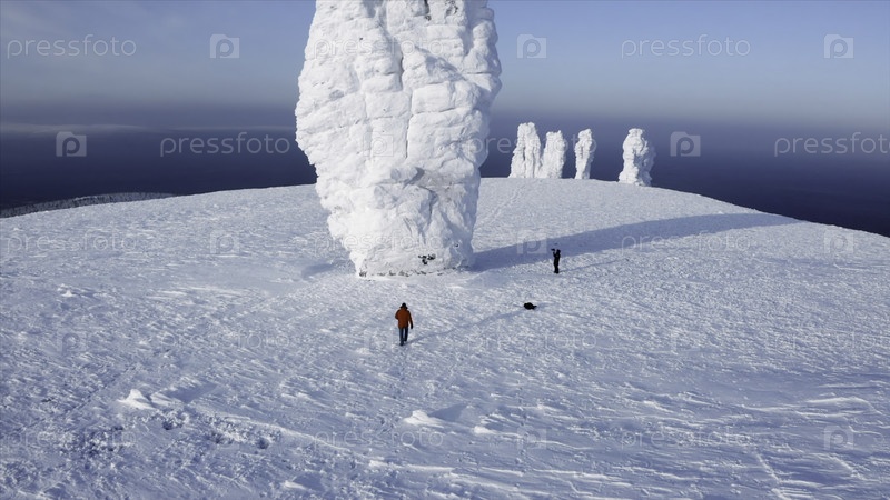 Мужчина в теплой одежде с пустой пустыней при температуре ниже нуля