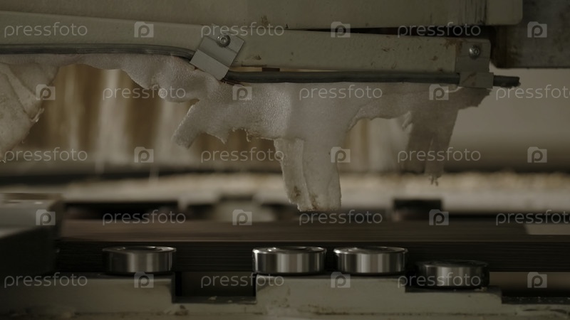 Ближайшее изображение движущегося механизма машины для обработки древесины.Креативное.Терьерские работы и детали завода