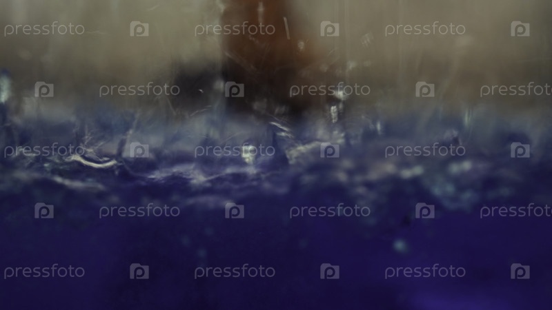 Перемещение голубой жидкости в стеклянной трубке в аптечной лаборатории, ближайший снимок СМИ Концепция автоматизированных технологий, химии, лабораторного оборудования