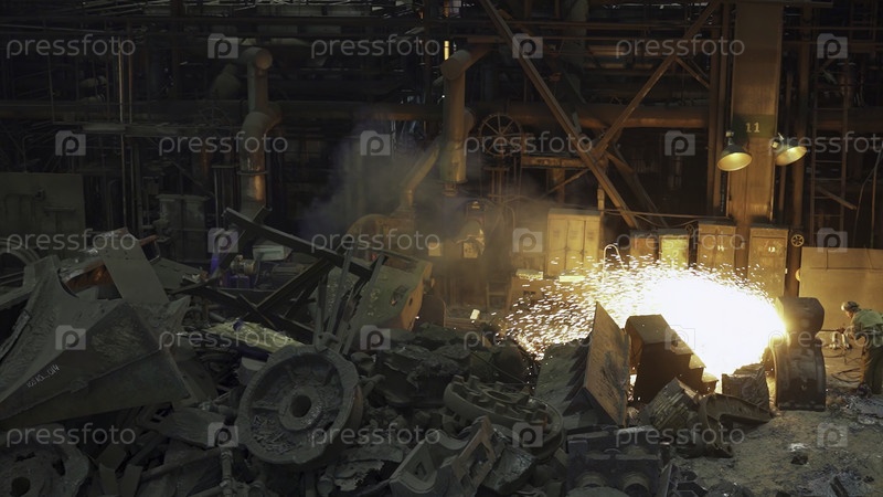 Большая куча промышленных отходов, расположенная в слабо освещенной складской обстановке или среде