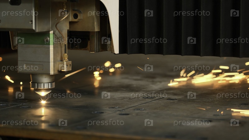 Выставка металлообработки и лазерная режущая машина, работающая с листовым металлическим материалом.Креативность.Промышленность, оборудование, технологии и концепция производства