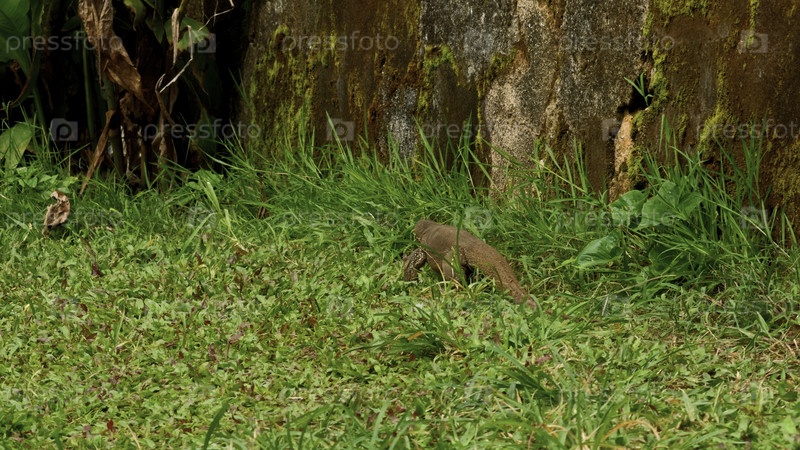 Опасный рептилий варан на лугу возле дерева в национальном парке. Действие. Концепция дикой природы