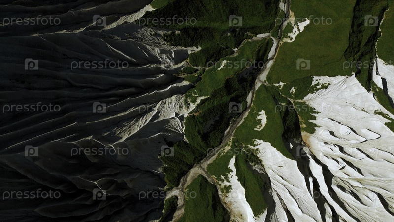 Зеленая летняя трава и белые каменистые склоны