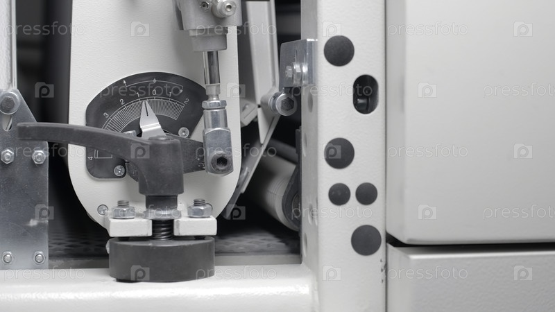 Клюшовый снимок конвейерной машины с индикатором давления.Креативное.Перемещение конвейерной линии под давлением.Производство резины на конвейерной машине