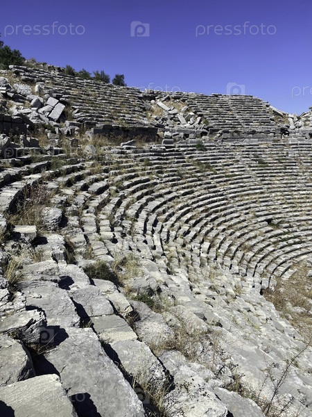 Наслаждайтесь потрясающим видом на древние руины театра, которые выделяют историческую архитектуру в спокойной природной обстановке