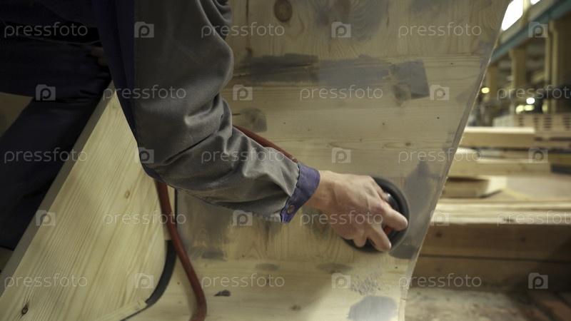 В условиях мастерской опытный ремесленник усердно использует шлифовалку, чтобы эффективно сгладить деревянную поверхность