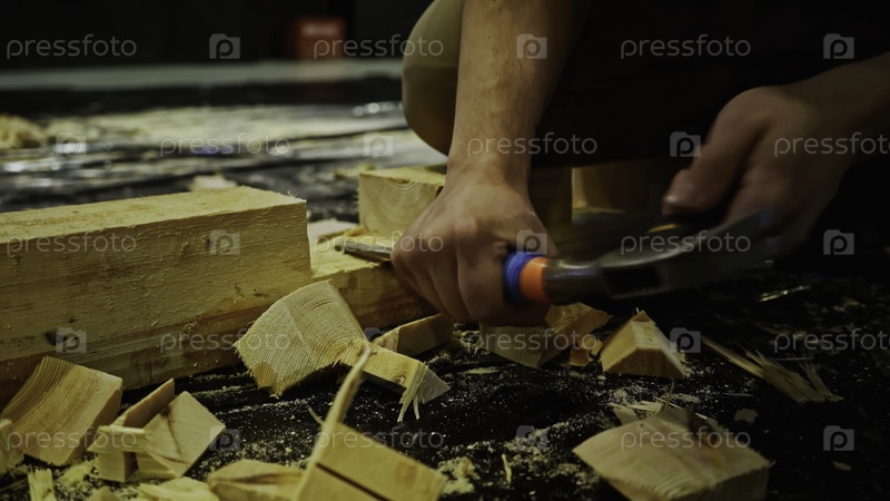 Работы по плотнице, резьба деревянных блоков. СМИ. Использование плита для обработки древесины при сборке сценографических украшений