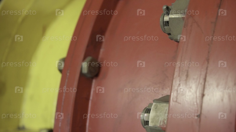 Ближайшее изображение ярких промышленных компонентов с яркими красными и желтыми цветами наряду со структурными деталями