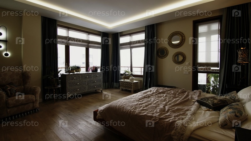 Уютная и удобная квартира просторная спальня с множеством окон
