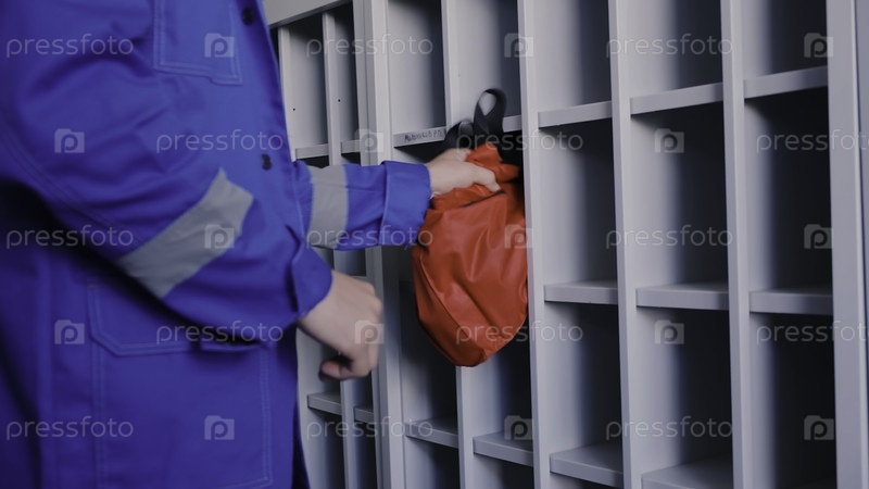 Медицинский работник в синей форме кладет красную сумку на запасное место