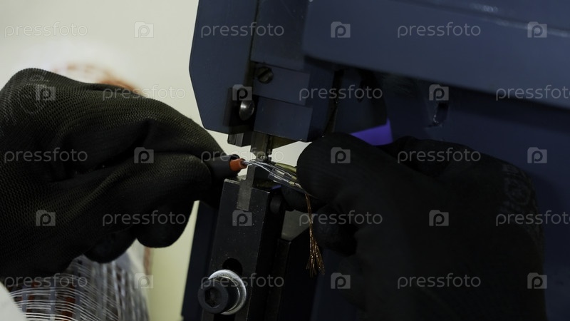 Ближайшее изображение инженера сварки проводов на фабрике.Креативное использование профессионального оборудования