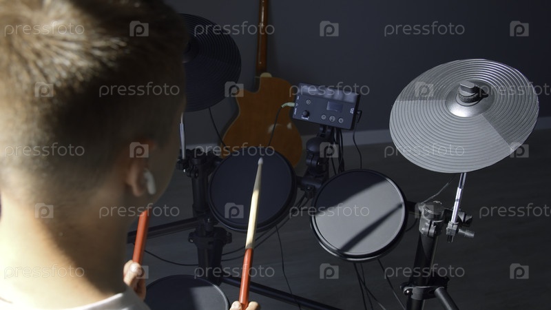 Игра на барабанах СМИ Взрослый музыкант играет на музыкальных инструментах Высокое качество 4k видео