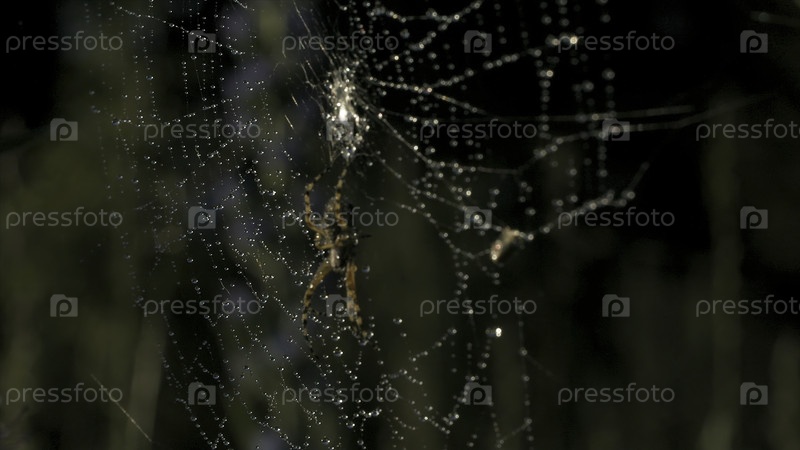 Клубовый снимок дикого большого паука в сети.Креативный.Тарантула на паутине в природе.Большой паук на паутине в солнечный летний день
