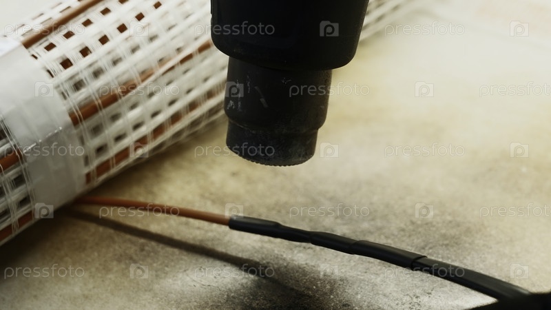 Электрик владеет теплоизоляцией вокруг медных проводов с помощью специального инструмента.Креативное.Детали мастерской и оборудования