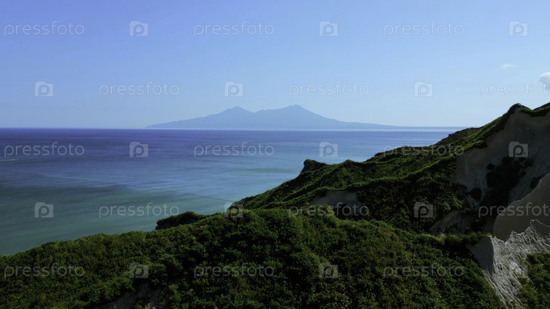 Прекрасный природный фон зеленых горных вершин джунглей, раскрывающих бирюзовую поверхность воды