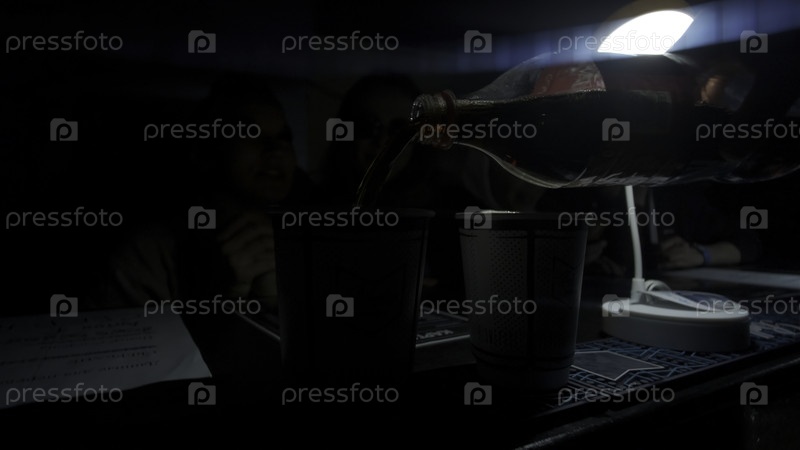 Чешская Республика - Прага, 5 июня 2023 года: налив колы в пластиковые бокалы на студенческой вечеринке. Клип. Концепция молодежи и ночной жизни