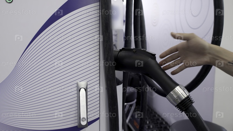 Близкий план современной станции зарядки электромобилей, демонстрирующей ее передовой дизайн и функциональность