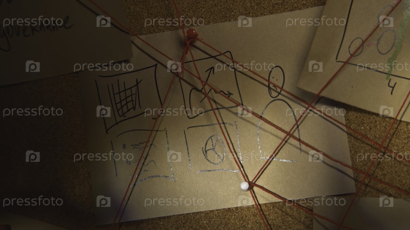 Ближайшее изображение записей на борту. Сценарий. Фонарик освещает секретные записи с помощью нитей. Красные нити пересекаются с таинственными нотами