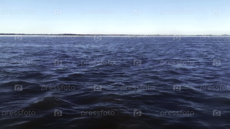 Прекрасный вид с движущейся лодки на голубых волнах.Клип.Завораживающий взгляд на синие морские волны на фоне побережья на горизонте.Быстрое движение на синих волнах
