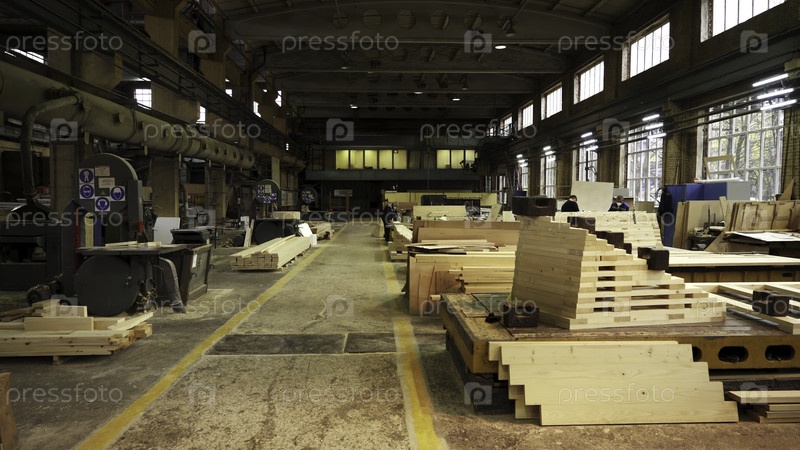 Просторная деревообрабатывающая мастерская с накопителями древесины, различными машинами и необходимыми инструментами для плотничества