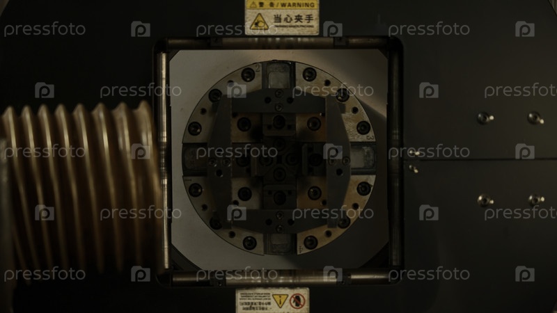 Концепция современных промышленных технологий.Креативность.Закрытие машины на заводе с вращающимися автоматическими деталями