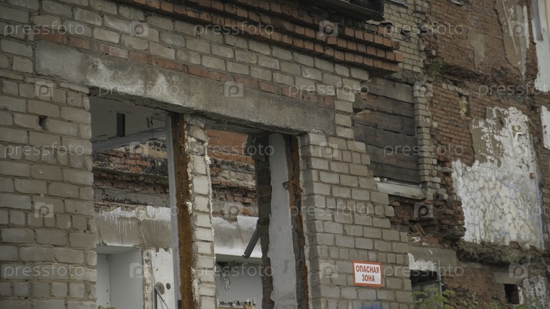 Старый заброшенный дом с обрушившимися стенами. Клип. Заброшенное жилое здание без окон. Руины старого жилого дома с кирпичами