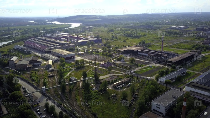 Вид с воздуха промышленной зоны в летний день, вид из воздуха