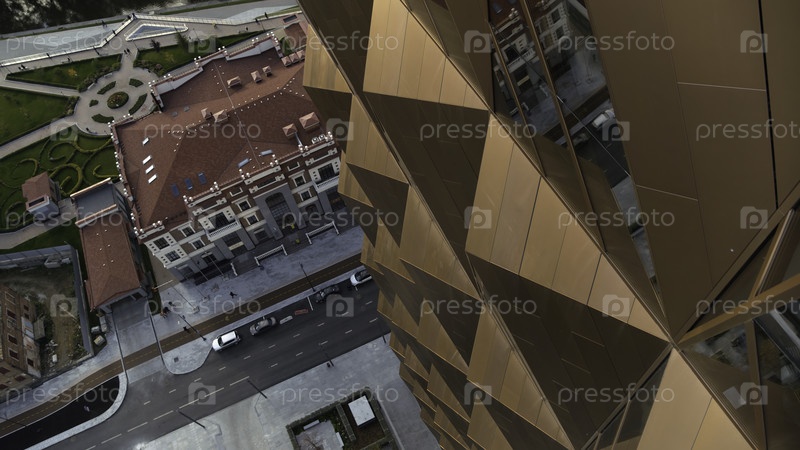Вид сверху вниз на бронзовый небоскреб или офисное здание