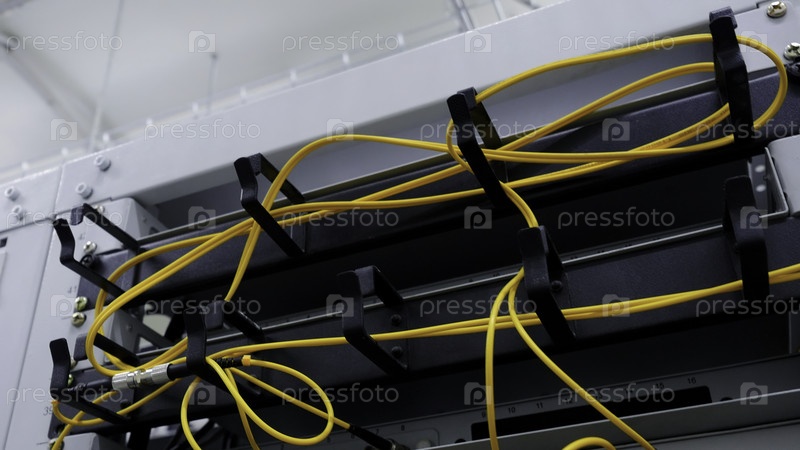 Желтые яркие тонкие провода. запасные кадры. переплетенные провода в демонтированном оборудовании. высокое качество 4k запись
