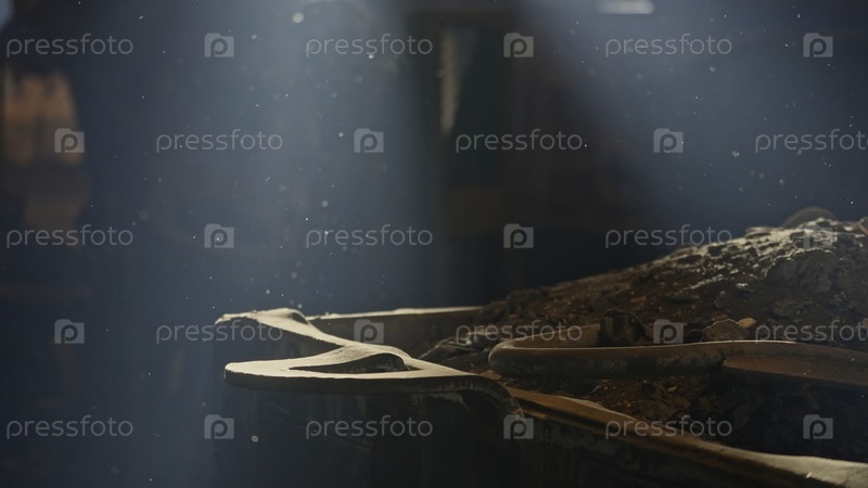 Красивые лучи света на фабрике. Скриншоты из запаса. Яркий солнечный свет проникает в пыльную фабрику. Пыль, мерцающая в лучах солнца внутри металлургического помещения
