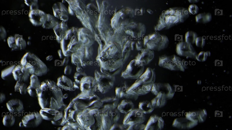 Ближайший снимок пузырей воздуха под водой на черном фоне