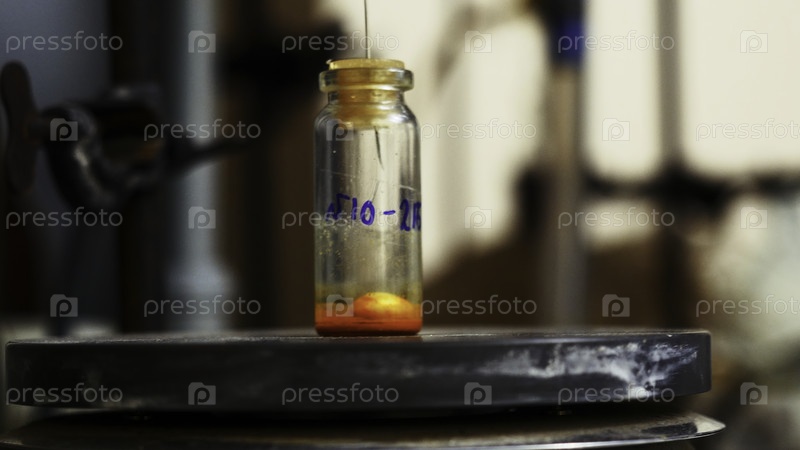 Лабораторная пробирка с вращающейся частицей и жидкостью. Запасные кадры. Вращающаяся жидкость в пробирке в химической лаборатории. Химическое соединение в небольшой пробирке