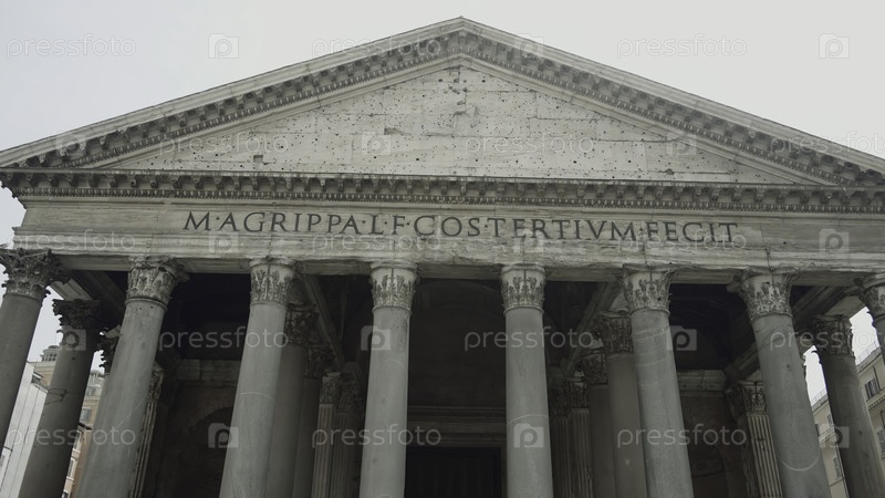 Рим, Италия - 30 августа 2022: Древнее здание римского храма. Действие. Вид на древнее величественное сооружение с колоннами. Пантеон является архитектурным памятником античного Рима