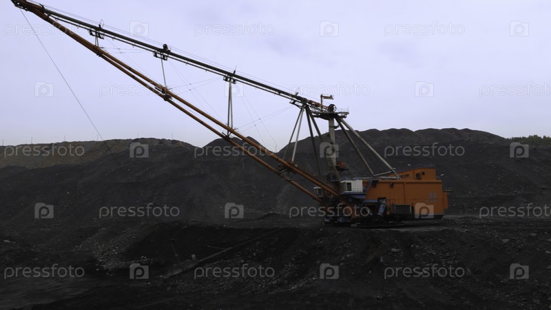 Устойчивый и мощный экскаватор эффективно работает в зоне добычи угля, демонстрируя передовые промышленные машины