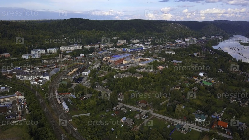 Небольшой город на фоне синего неба, концепция логистики и транспорта