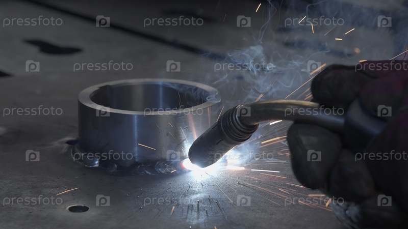 Клубокая сварка искрами и металлическим кольцом.Креативность.Сварильщик сварит металлическое кольцо искрами.Искры от сварки металлическим кольцем на фабрике или в кузнице