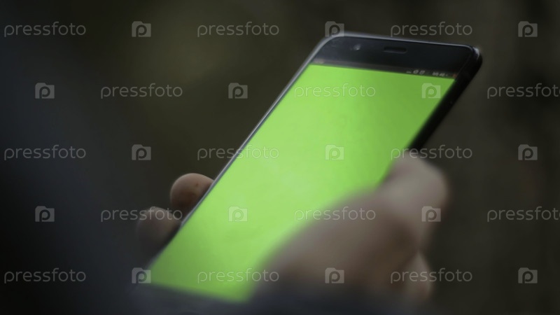 Смартфон с зеленым экраном. акции. черный новый телефон, на котором есть замок и показан яркий зеленый экран