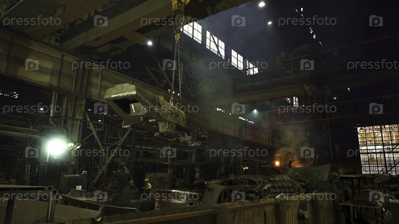 Промышленная мастерская с использованием кранов и различных типов машин для производственной деятельности