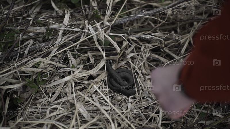 Клубовое изображение, на котором видна змея, удобно свернутая в сухой траве и способствующая взаимодействию с дикой природой