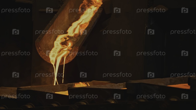 Потоки горячего металла заполняют формы на фабрике. Скриншоты сборов. Красивый расплавленный металл вливается в формы. потоки металлического потока на металлургическом заводе