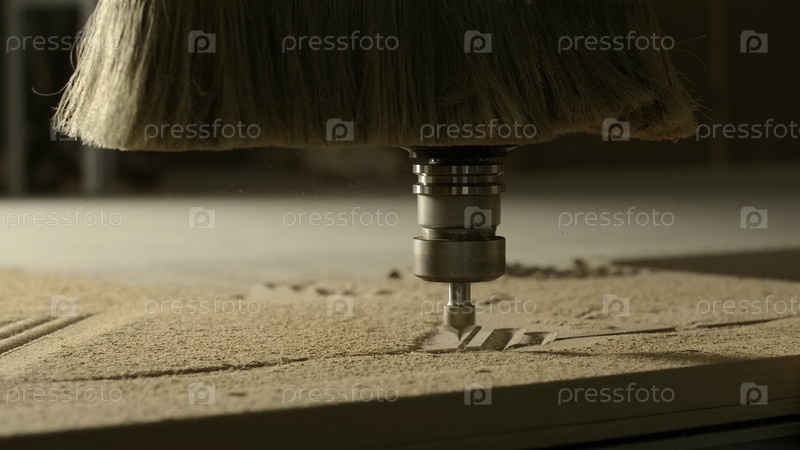 Ближайшее изображение деревянной резьбы с помощью машины, производящей узоры на деревянном доске.Креативное представление о столярстве