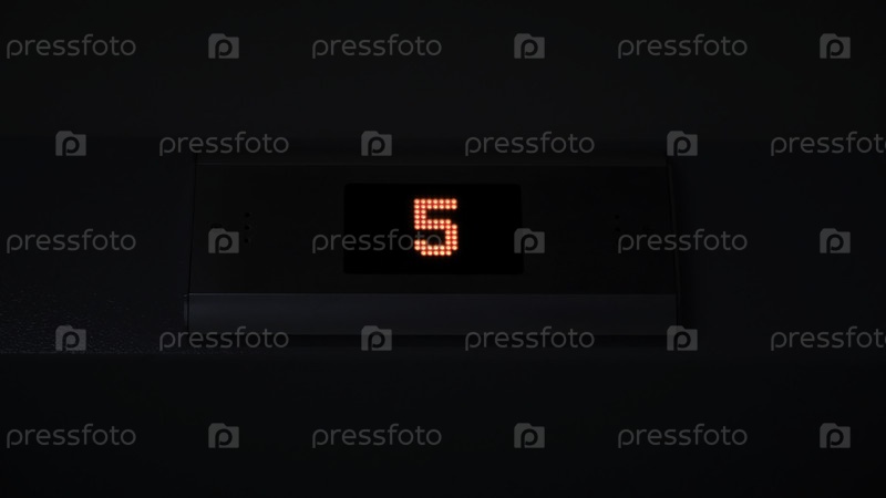 Дисплей лифта, спускающегося вниз, указывающий на прохождение номера этажа. Концепция. светодиодный экран, интерьер