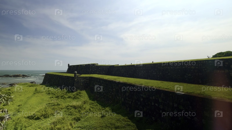 Внешняя стена форта в Кинсале, Ирландия Акция Каменная крепость и морской берег