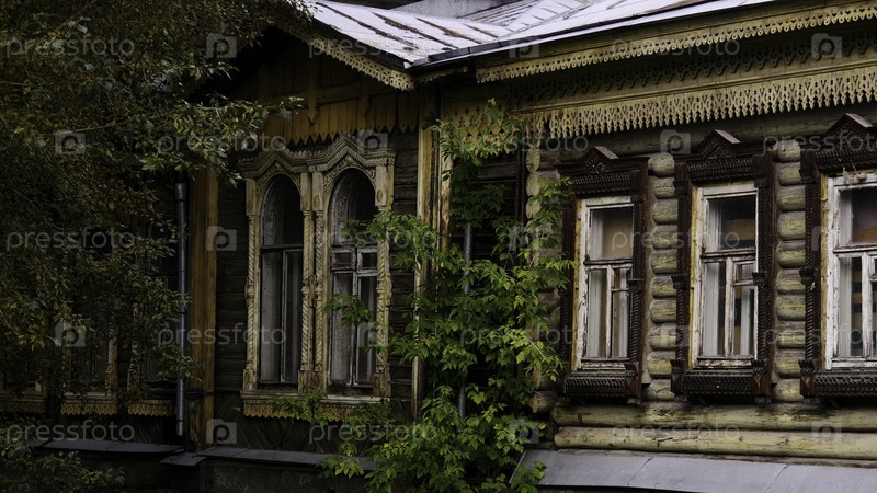 деревянный дом. фондовые кадры. жилой деревянный дом со старыми окнами, заросшими травой. высокое качество 4k видео