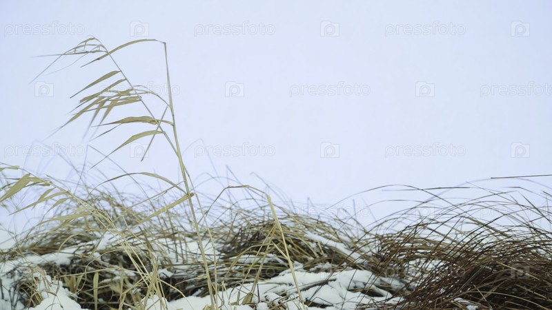 Красиво спокойная прибрежная сцена, демонстрирующая высокую траву, мягко раскачивающуюся под тихим бледным небом