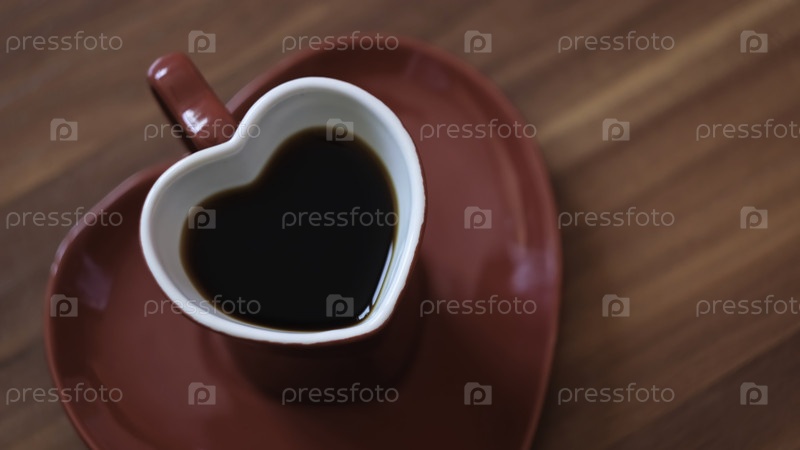 Женщина сделала кофе в кружке с сердцем Концепция Красивая красная кружка в форме сердца с темным кофе Романтическая кружка в форме сердца с кофе на романтический день