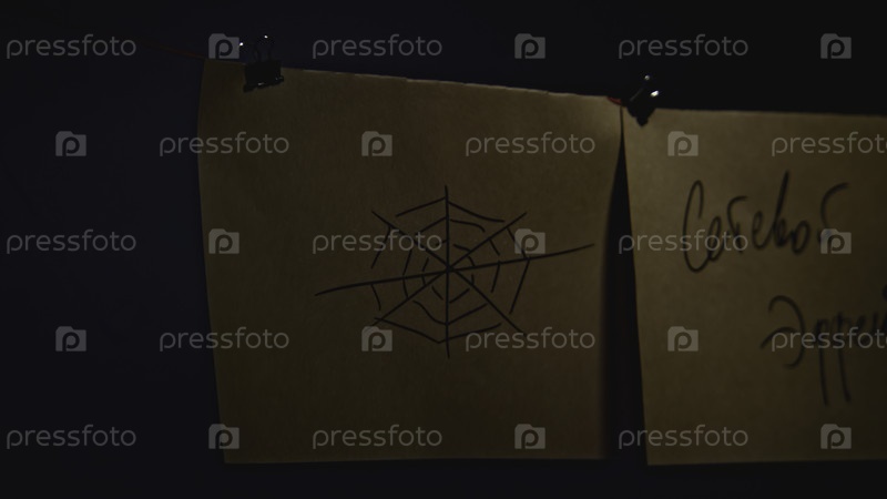 Таинственные заметки на струнах. Скриншоты. Заметки с шифрованными знаками в ночной комнате. Фонарь, освещающий загадочные записки в ночном офисе