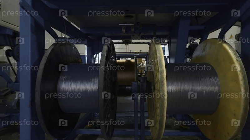 Вращающиеся катушки на промышленных предприятиях. творческий. процесс пластмассового сплава и обмотки полимерных стержней. химическая мастерская промышленного завода