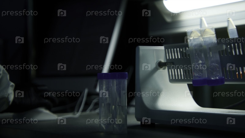 Испытания в лаборатории. Фрагменты материалов. Молодые медицинские работники, которые работают с оборудованием и анализируются в пробирке