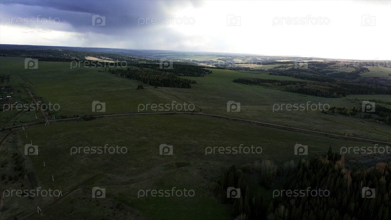 Дорога между зелеными рисовыми полями в Таиланде. Клип. Сельская область с бесконечными лугами и лесом